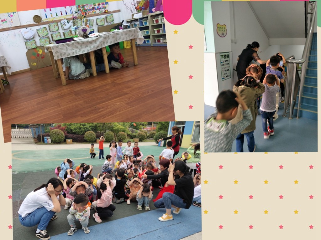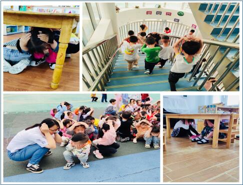 在演练前期,安全主任组织全园教职工学习了地震演练方案,划分了各班级疏散路线、安排各安全通道负责人以及医疗保障人员等。班级教师利用晨间谈话活动,引导幼儿了解一些有关地震逃生避险的知识,知道地震演练的重要性。2019年5月14日下午14时28分,警报声第一次响起,教师在班级组织幼儿紧急避险,孩子们表情严肃,迅速抱头躲在了桌下,墙角。当第二次警报声响起,教师组织幼儿按照指定的路线有序撤离至幼儿园的操场上,撤离过程中,每个楼梯口和安全通道都有负责人员,协助班级教师保证幼儿安全撤离,到达安全的场地后,每班教师及时清点幼儿人数,确定幼儿有无伤情后,向安全主任汇报本班撤离情况。演练最后,安全主任对本次的演练进行总结。